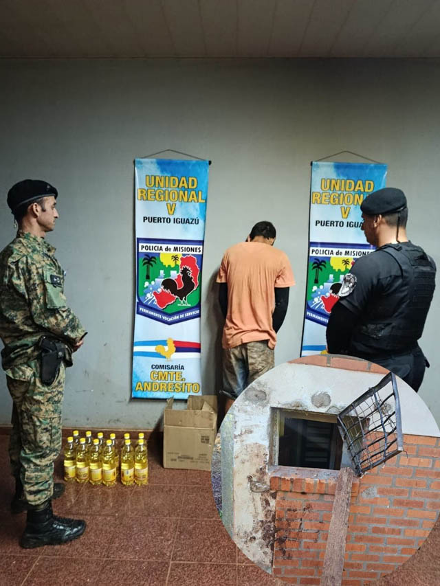 Ante la situación, se desplegó un operativo en la zona y, durante patrullajes preventivos, una comisión policial detectó a pocos metros del lugar a un hombre que transportaba una caja de aceite, por lo que procedieron a su inmediata interceptación.