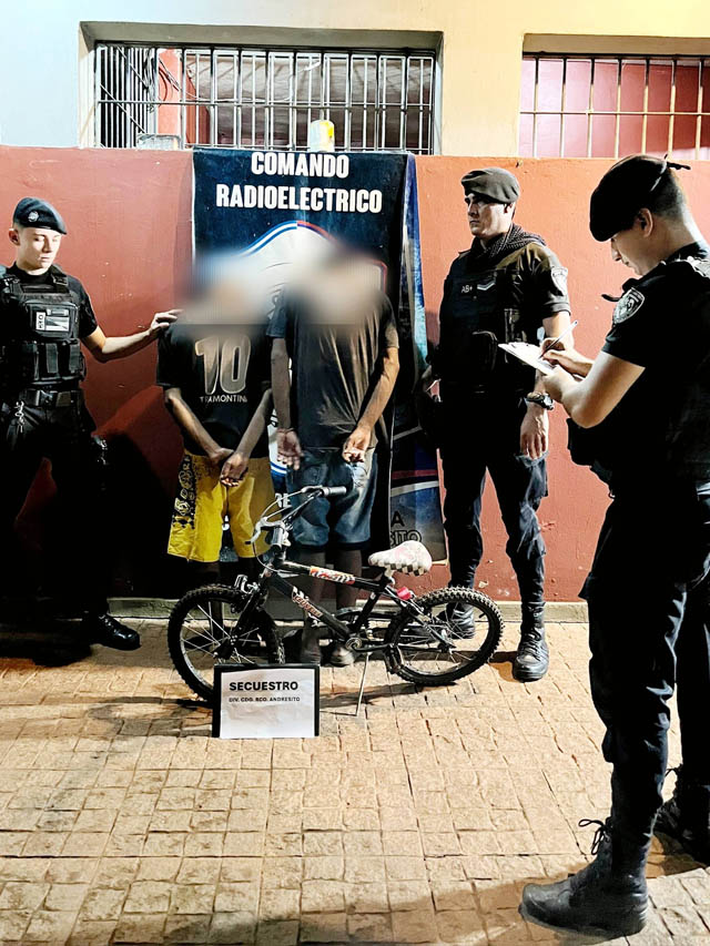 El procedimiento se concretó en las últimas horas, cuando efectivos policiales realizaban recorridas preventivas por el barrio Quintas Bajas de la localidad de Andresito. Durante el patrullaje, los uniformados observaron a dos masculinos que llevaban una bicicleta rodado 16.