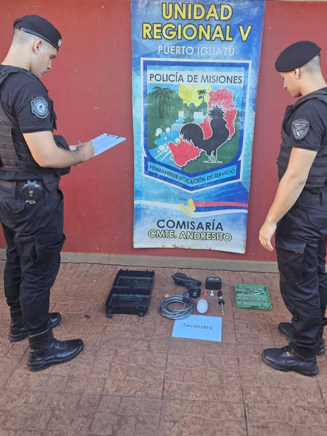 En otro operativo, personal de la comisaría de Comandante Andresito investigó un robo en una vivienda céntrica denunciado por un hombre de 40 años. Las pesquisas permitieron identificar al presunto autor, un adolescente de 16 años, quien habría comercializado lo sustraído en el barrio Quintas Bajas. Finalmente, se recuperó una hidroeléctrica y una caja de llaves color verde. El joven fue demorado y puesto a disposición del Juzgado Correccional y de Menores.