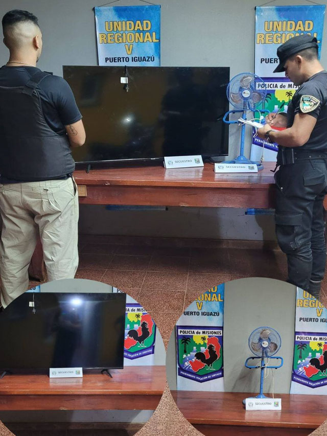 Por otra parte, en la localidad de Andresito, efectivos policiales que trabajaban de manera encubierta en la investigación de un robo ocurrido recientemente en el barrio Malvinas, lograron recuperar un televisor de 55 pulgadas y un ventilador de pie que habían sido sustraídos a un vecino de 32 años.